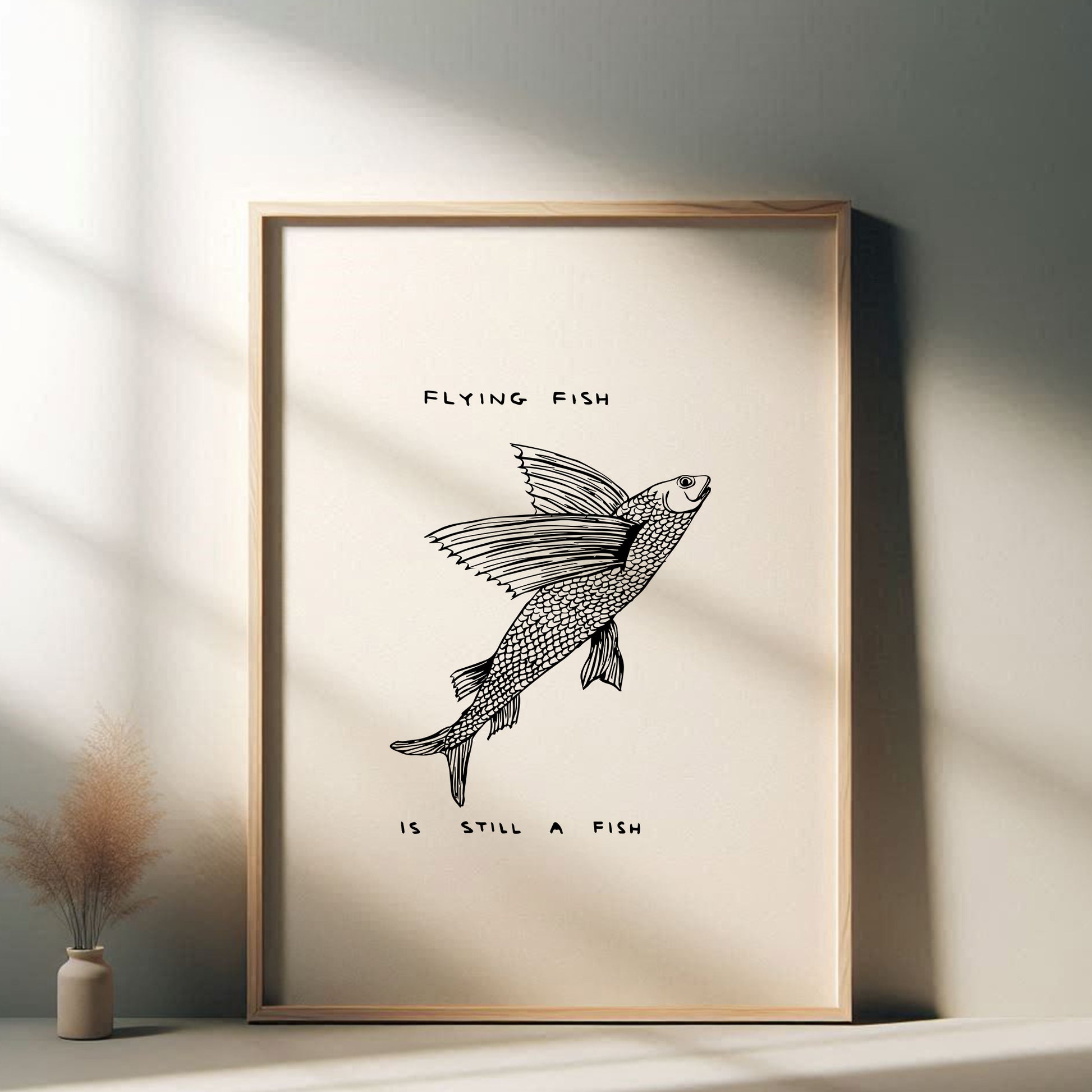 David Shrigley - Flying Fish Is Still A Fish, Quirky Wall Art, Pop Art Decor, Funny Poster, Contemporary Home Gallery, Humorous Decor, Art